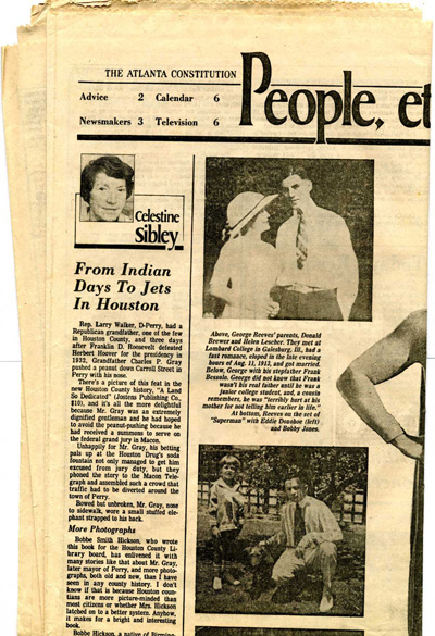 Atlanta Constitution newspaper image as it was shown in March 2005 Ebay Auction. Caption reads as follows: Above, George Reeves' parents, Donald Brewer and Helen Lescher. They met at Lombard College in Galesburg, Ill., had a fast romance, eloped in the late evening hours of Aug. 11, 1913, and got married. Below, George with his stepfather Frank Bessolo. George did not know that Frank wasn't his real father until he was a junior college student, and a cousin remembers, he was "terribly hurt at his mother for not telling him ealier in life." |