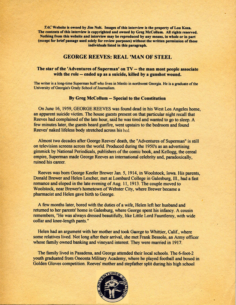 Lou Koza (editor). Superman and all related indicia are trademarks of DC Comics, Inc. and are reproduced for historical purposes only. Use of the name of any product or character without mention of trademark status should not be construed as a challenge to such status. |