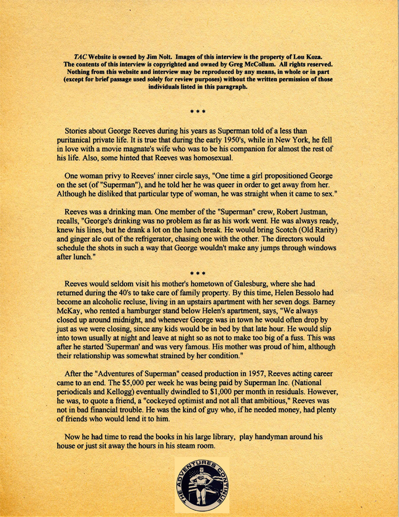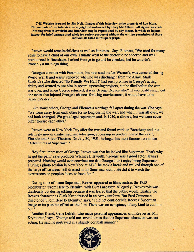 Reeves and the Adventures of Superman. All contents copyright©