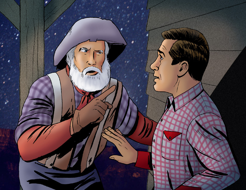 also stood. "Sounds like a good idea," Clark said. He shook Cramer's hand. "Thank you again for your hospitality, and we'll see you in the morning." Cramer stood thinking for a few moments after they were gone. He stepped out on the porch and searched the night until he saw Jake, lingering near the corner of the house. He gave the old timer a nod, and the prospector shambled off into the darkness.