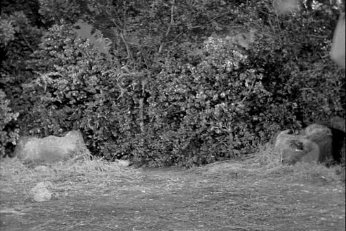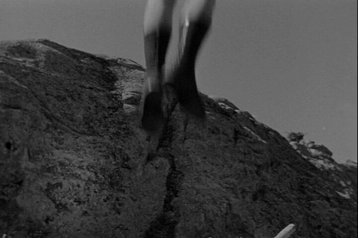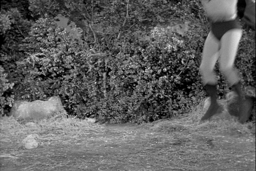 ![]() A similar stunt, this from "Panic in the Sky" (1953). Back up director, George Blair, however, didn't have Carr's eye for screen composition. Most of the landings he filmed were at a forty five degree to the camera, and weren't nearly as effective. ![]() ![]() The two above pictures, from "The Face and the Voice" (1953) show George standing on the ladder and throwing his arms out in preparation to jump. We can see that he's not high off the ground, and therefore, the illusion of flight just isn't there. It's not a good stunt, and the fault lies with the director and the cinematographer, not with George. After Tommy Carr left the series, the quality of George's stunts declined. ![]()