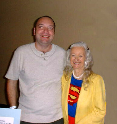 sites. I found many, but there was yours that had a lot I could hardly wait. I went to the show, waited on a long line even though it was freezing outside. But it was all worth it, because as soon as I got in I ran to find Noel Neill, and then... Wow! There she was... in person! Noel was very nice to me, and let me take a picture with her. She also autographed a color picture of Superman (George Reeves) and herself. I thanked her, gave her a hug and kiss, and told her she made my night. She smiled back and said, "Thank You." It is a day I'll never forget. ![]() Noel Neill and Mark Palermo, October 2005 Hi Jim! I had such an idyllic time with Noel here - more conversations, coffees and phone calls than I could ever have hoped for. It was wonderful to have all that one-on-one time with her, learning about her family and career outside TAOS. By the time she left Australia, we had developed a very easy rapport - and I feel very privileged to feel that warmth. My wife has finally met "the other woman" and - luckily for me - Noel has received her endorsement! And my little boy can say he has met the real Lois Lane in his own hometown. Such was her friendly and open attitude, that we are all a little sadder that today "our Noel" is no longer sleeping just a few miles away. I asked her about posting the photo and she's happy for you to do so. Anyway Jim - thanks again for your help. Noel has enormous respect for you and we spoke of you often. Cheers, ![]() Noel Neill and Terry Ryan (Tez) in Australia, July 2005 Jim, I have to thank you big time for introducing me to Larry and