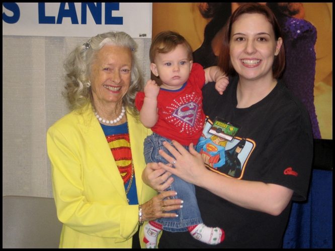 Hi Jim, I am a huge Superman fan and have a 10-month-old daughter named Lois Lane. Of course, I jumped at the chance to meet Ms Noel Neill at Wizard World Texas in November, 2007. I couldn't wait to introduce my Lois to the original Lois Lane! Ms Neill was the nicest lady and actually thought I was pulling her leg at first when I told her my daughter's name. The three of us got a picture together and I had her sign a photo for my daughter. She inscribed it: "To Lois Lane. Best Wishes, Noel Neill - Lois Lane Number 1". Isn't that sweet?! I had my arms full with the baby and she even insisted on helping me load up the stroller. What a classy lady. It just made my year and I hope my little Lois appreciates the memento. ![]() Noel Neill, Lois Lane, and Amy Cottrell November, 2007 I attended Supercon in Ft. Lauderdale (November, 2006), and