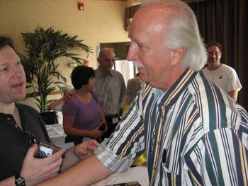 Larry Ward, author of four books; Truth, Justice and the American Way, The Life and Times of Noel Neill, the Original Lois Lane, Canon City, Beyond Lois Lane and an expanded version of his first entry is seen here pushing his way through an onslaught of photographers. |