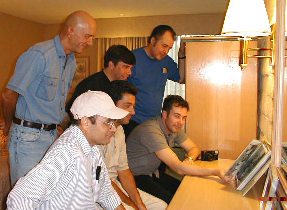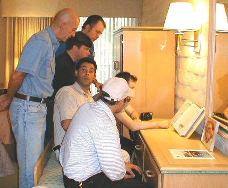 ![]() Standing (l-r): Jim Nolt, Steven Kirk, Chuck Harter Seated (l-r): Richard Taylor, Lou Koza, Terry Ryan Later that night, back at the Beverly Garland, we gathered to look at a few volumes of incredible photos, articles and memorabilia collected by Chuck Harter. |